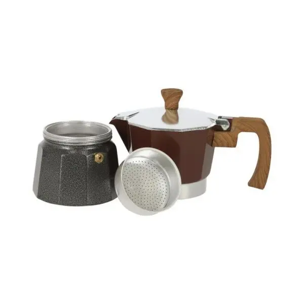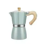 CAFETERA MOKA ESPRESSO VERDE MANIJA EN MADERA 3 TAZAS 150 ML