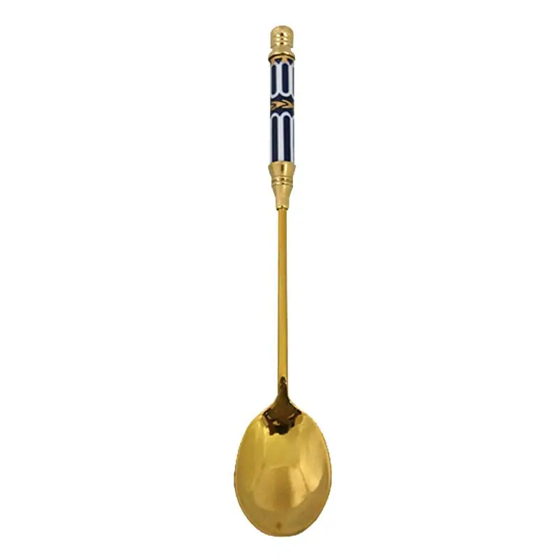 Cuchara Dorada Cafe Mango Rayas Azul/Blanca