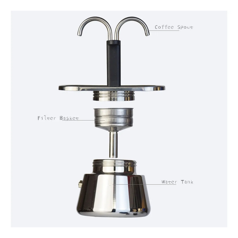 CAFETERA MOKA INOX CON 2 SALIDAS 2TZ