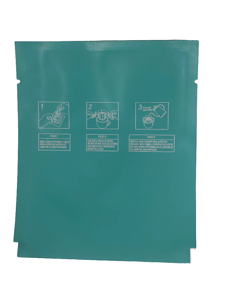 Una bolsa drip coffee, también conocida como “drip bag”, es una forma sencilla y portátil de preparar café por goteo, ya que contiene café molido en un filtro de papel que se puede colgar directamente en una taza. Permite una preparación rápida y fácil, ideal para quienes buscan una taza de café recién hecho sin complicaciones.