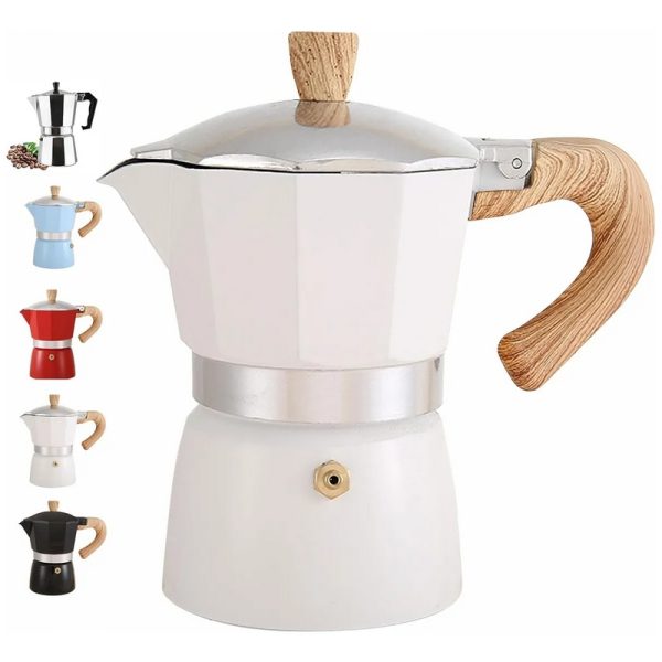 Moka Espresso Blanca Manija Madera 12 tazas