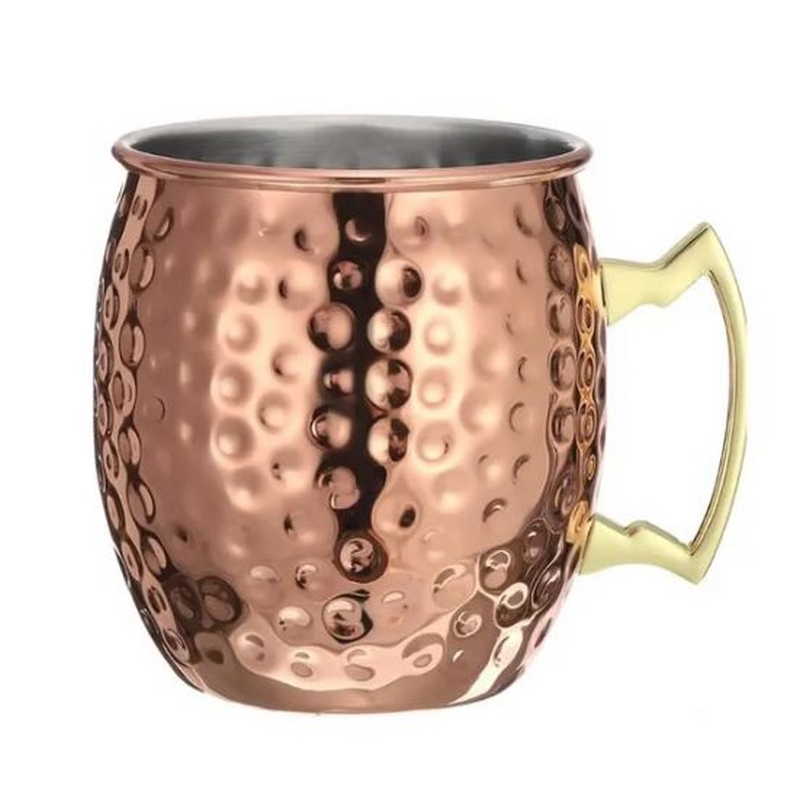 MUG BARRIL ORO ROSA MARTILLADO 16 OZ MANIJA DORADA
