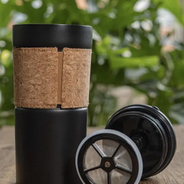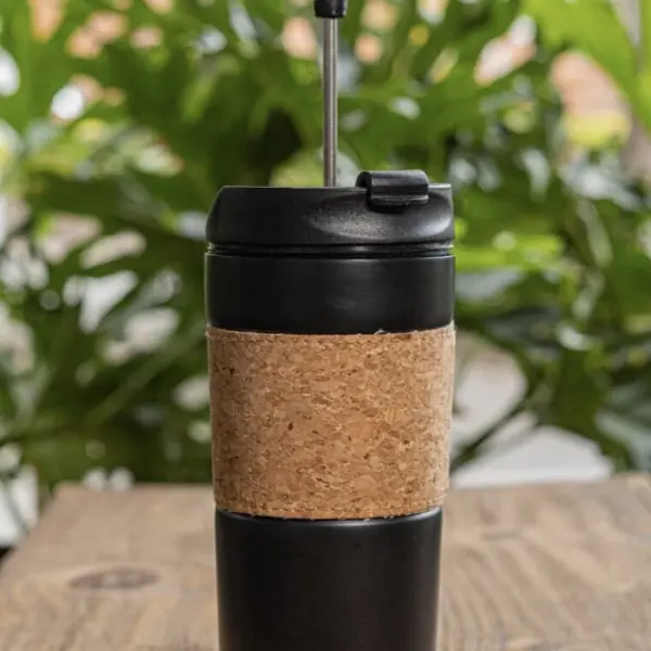 Mug Prensa Francesa Negro Con Aislante En Corcho 400ml